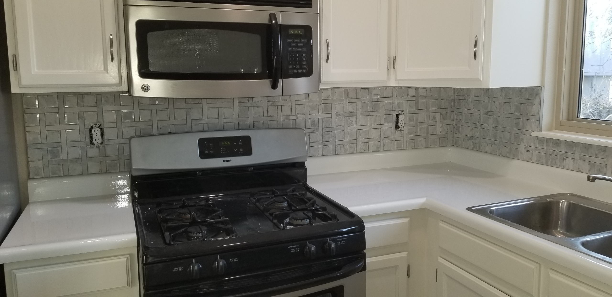 Let us renovate your entire kitchen. We can hang new cabinets, replace your counter tops, install custom backsplashes, and install new lighting.